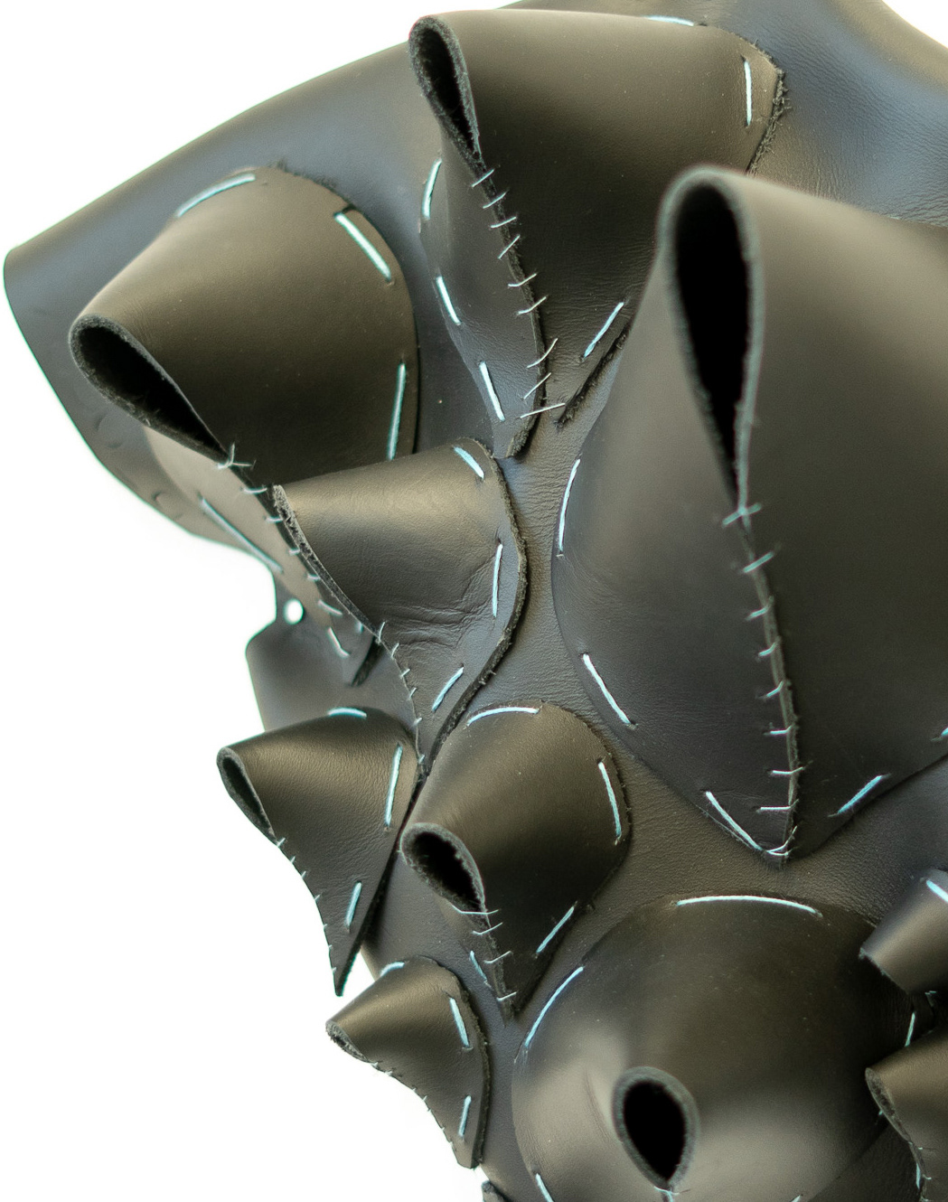 Portals of your organs. Leather hide, thread, nails. November 2025. (detail shot)